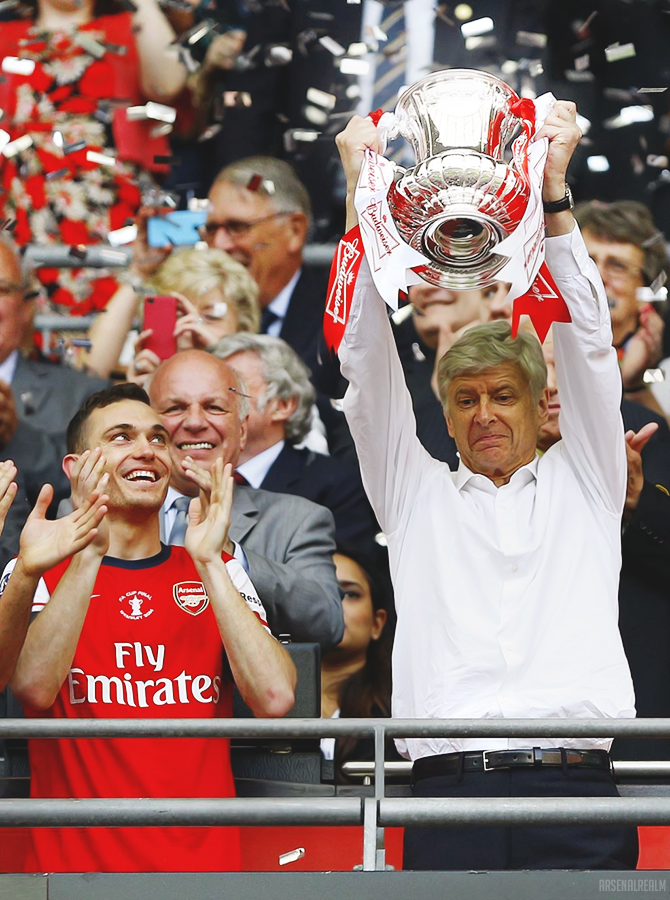 | Wenger erguendo a taça da FA Cup |